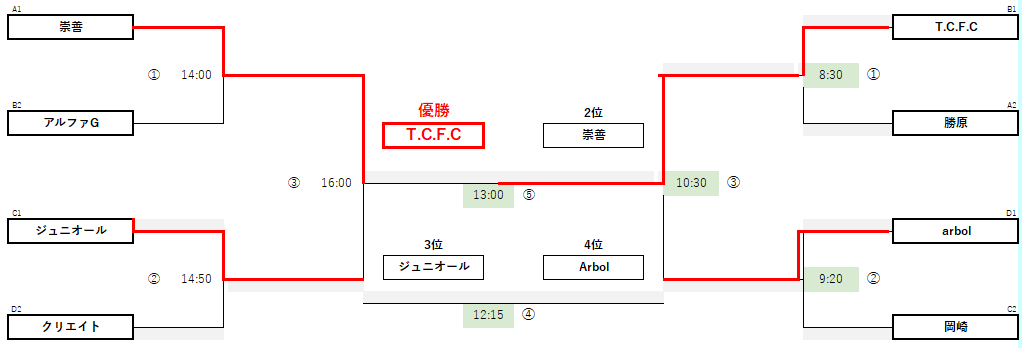 2 | 勝原SC | 10 | 5 | 3 | 1 | 1 | 13 | 6 | 7 |